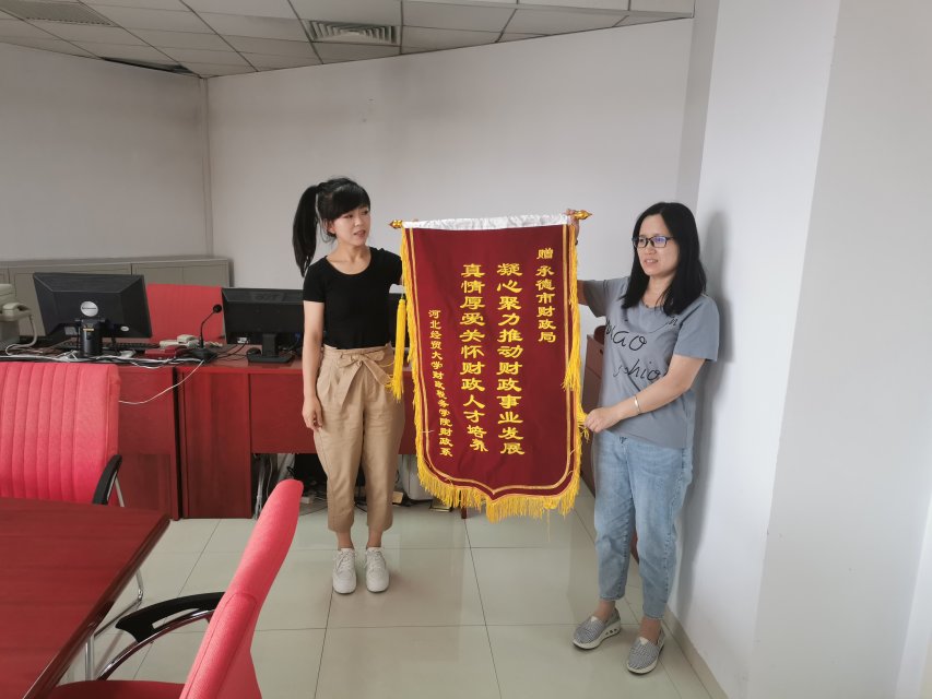 座谈会结束之后,刘教授代表beat365英国官方网站向承德财政局送上锦旗,以示感激。此次调研活动对beat365英国官方网站财政学科发展及财政人才培养起到了良好的推动作用,对承德市的财政预算管理和绩效改革工作提出了相关建议,推动了承德市财政工作的发展。