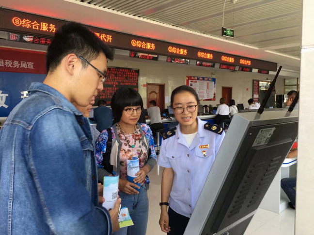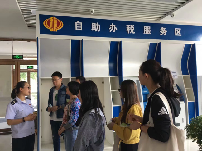 紧接着,讲解人员从入口按顺序一一介绍了办税大厅各个窗口以及机器设备的作用以及应用方法。并且讲解了具体的操作流程以及业务办理流程,介绍了办税服务大厅信息化发展要求以及改革方向。