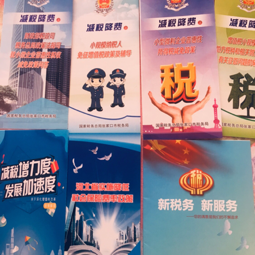 首先负责讲解的税务人员给调研小分队每人发了政策相关的宣传册,这些宣传册按税种分类放置于大厅入口服务台,方便纳税人查看了解。宣传册上最新政策一目了然,计算方法以及优惠政策都结合图表展示给纳税人。