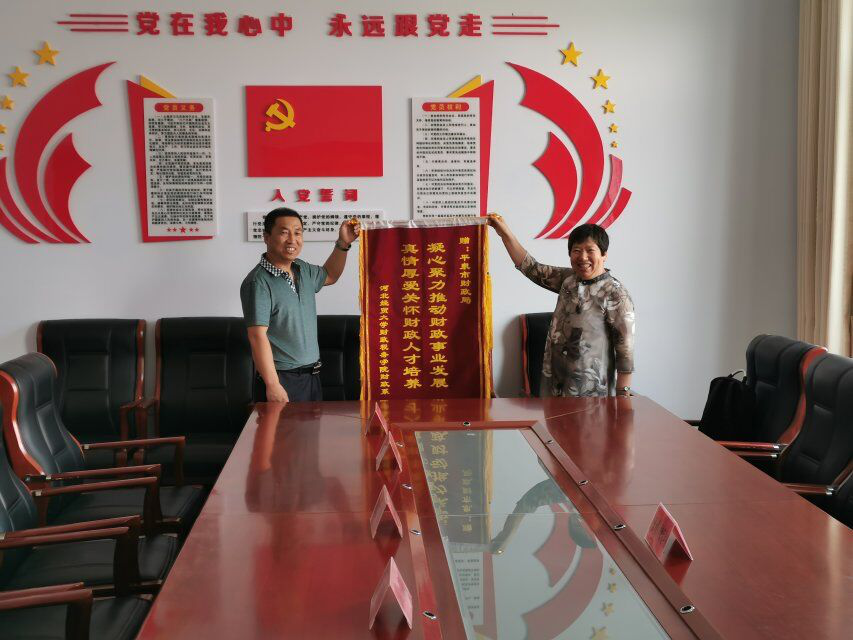 座谈会结束后,刘老师代表beat365英国官方网站向平泉市财政局送上锦旗,以示感激。此次调研活动,beat365官网师生深入一线,调研小分队在交流过程中对当前基层财政的发展情况有了一定初步的了解,也锻炼了自己的专业知识技能,对beat365官网财政人才的培养起到了至关重要的推动作用,同时也为平泉市的财政绩效改革工作献上自己的一份力量。 (撰稿:徐玉琳 摄影:王占兴)
