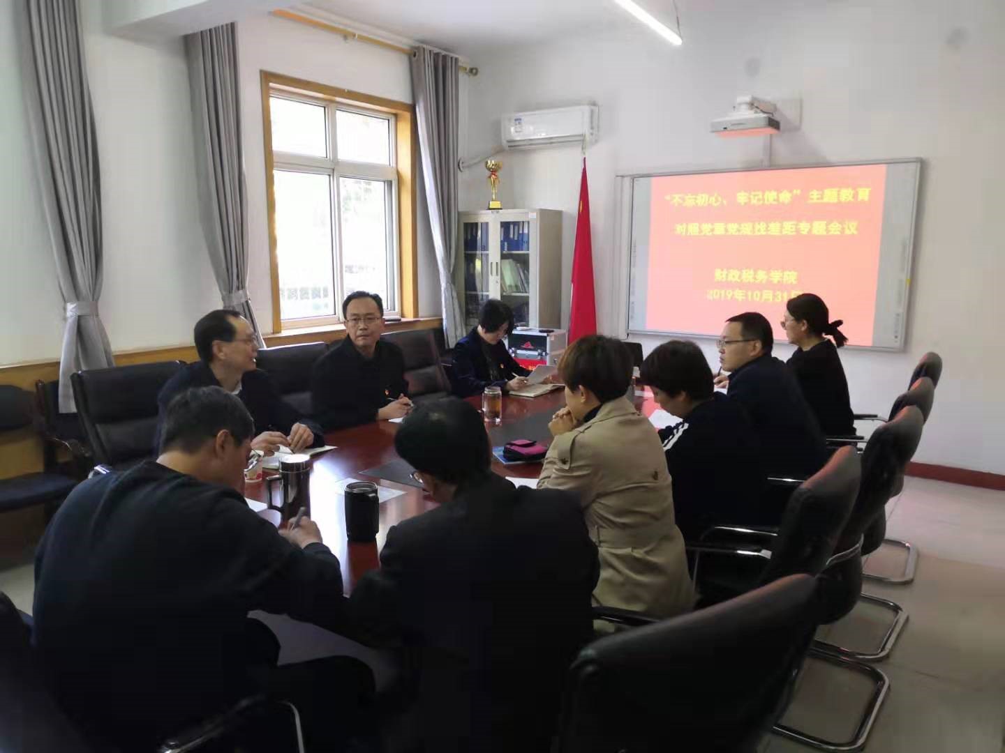 10月31日上午,beat365英国官方网站在第三办公楼105会议室召开“不忘初心、牢记使命”主题教育对照党章党规找差距专题会议,学院党委领导班子成员和所属学生支部书记参加。校主题教育第三督导组王文国列席指导。