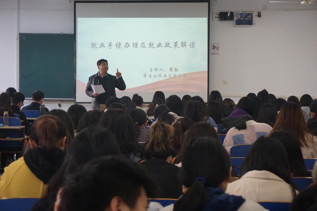 根据学校就业宣传月统一安排,beat365英国官方网站于11月5日在第三教学楼A401作题为“就业手续办理及就业政策解读”的学术报告,此次报告由辅导员翟勤主讲。beat365英国官方网站党委副书记刘贵来和毕业班全体辅导员,以及学院2020届应届毕业生全体参加。