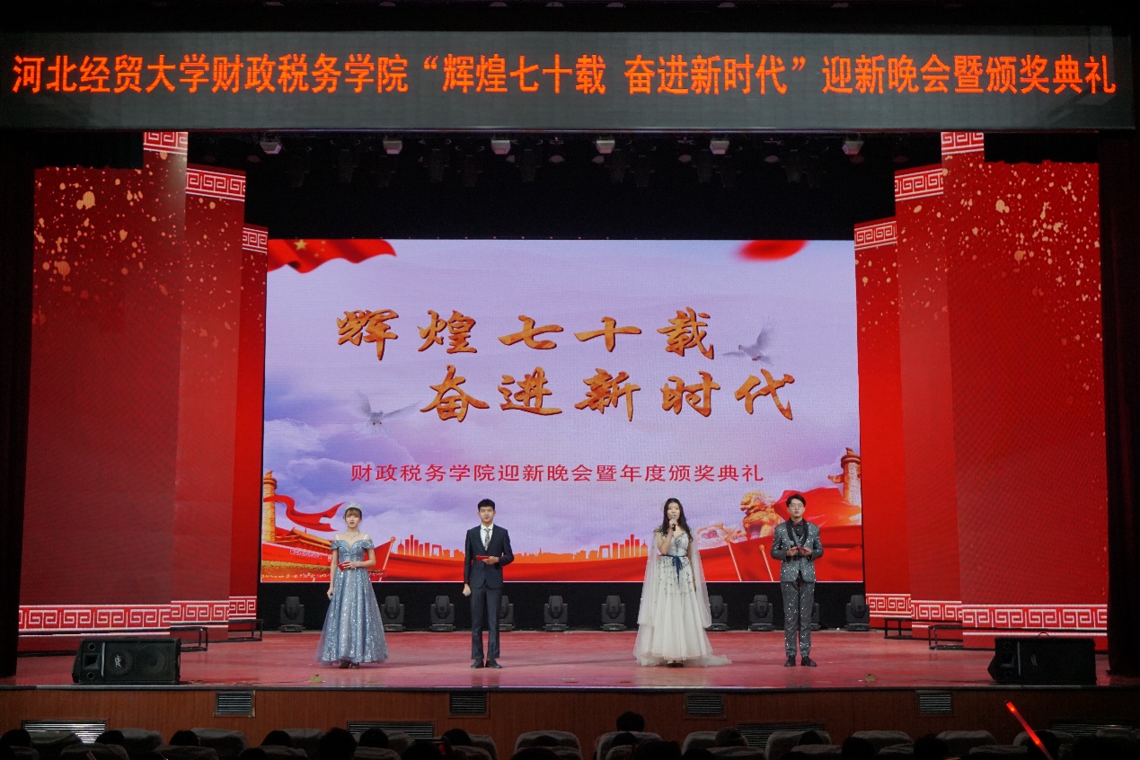 12月24日,beat365英国官方网站在校礼堂举办“辉煌七十载 奋进新时代”迎新晚会暨年度颁奖典礼。beat365官网党委副书记刘贵来、副院长温立洲、学院老师和beat365官网18、19级全体同学参加。