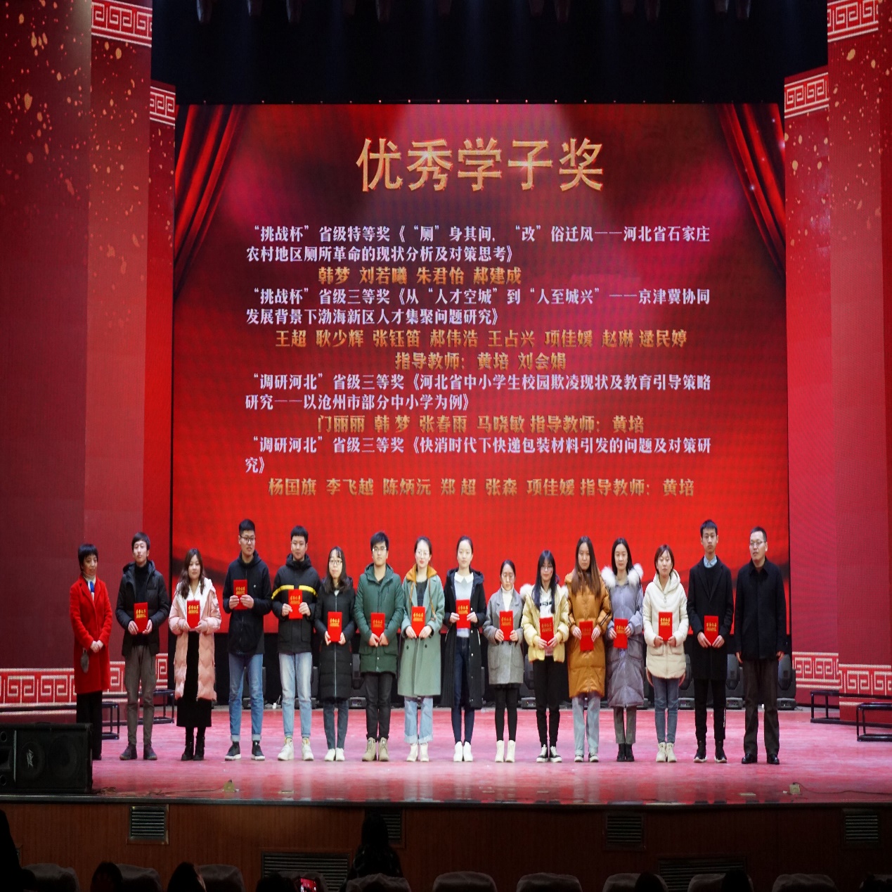 在晚会中间的颁奖典礼现场,刘贵来和温立洲向beat365官网学生颁发了优秀集体奖和优秀学子奖,对在班团建设、专业学习、学科竞赛、创新创业等领域取得优异成绩的7个优秀集体和14名优秀学子进行了表彰。
