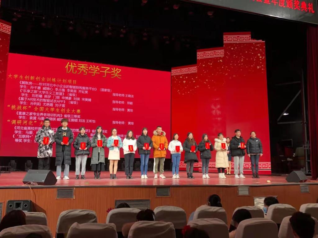 晚会期间,刘静旺、王晓洁、郑颖向学生颁发了优秀集体奖和优秀学子奖,对在班团建设、专业学习、学科竞赛、创新创业等领域取得优异成绩的8个优秀集体和13名优秀学子代表进行了表彰。