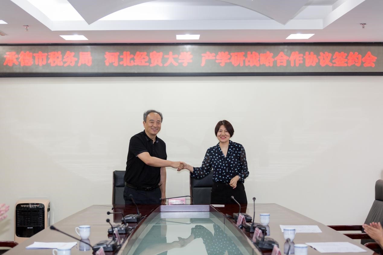 6月30日,beat365英国官方网站与国家税务总局承德市税务局签署了为期十年的产学研基地建设协议。承德市税务局党委书记赵波,beat365官网长王晓洁、党委书记郝江华出席了签约仪式。