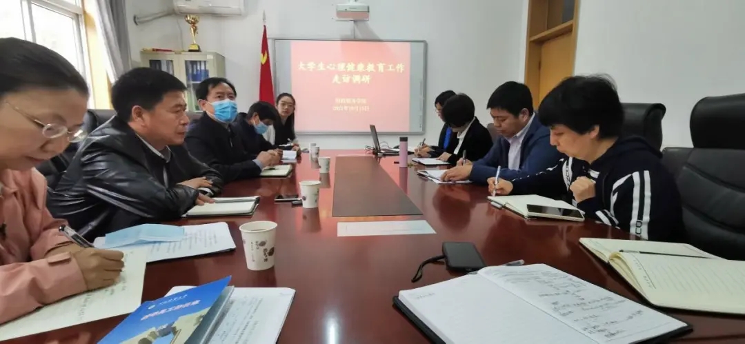 10月15日上午,校党委副书记刘建平来beat365官网走访调研大学生心理健康教育工作,学生处负责人及相关工作人员陪同,beat365官网全体领导班子成员和辅导员参加。