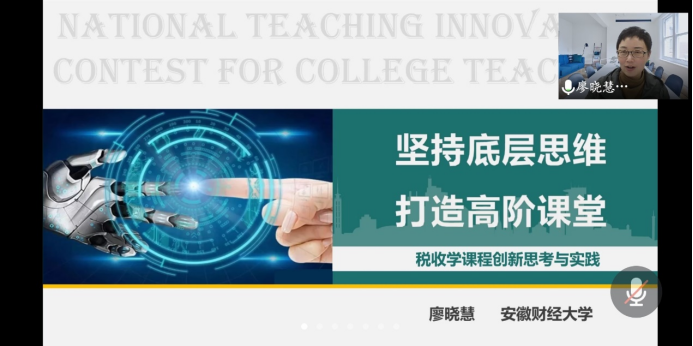 廖老师以教学准备、教学设计、教学实施、教学反思为大纲,从税收学课程教学四大创新要素、坚持底层思维、打造税收学高阶课堂与税收学课程教学反思四个方面出发,详细讲解了教学创新的方式方法,着重强调了如何更好的实现“教师主导,学生主体”、“以学生发展为中心”、“创新教学策略、方法和技术”等理念,为老师们学习提供了范本。通过此次学习老师们收获颇丰,对于活动给予了高度评价。