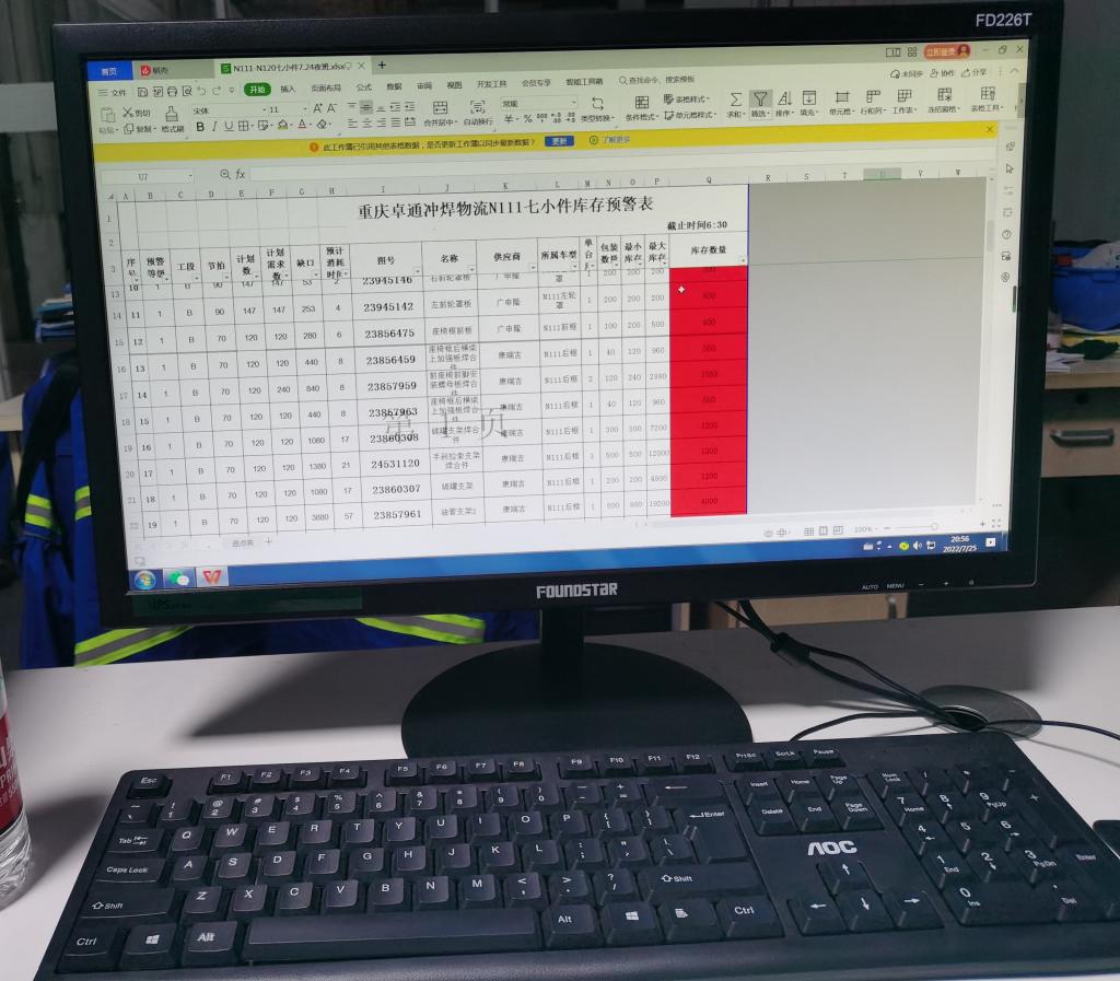 进入生产车间时要做好安全防护,需要穿劳保鞋,佩戴安全帽和护目镜。除了以上工作外,我们还有很多任务。比如供应商来货后,我们需要清点来货,如有短装、漏装,需要及时在微信“简道云”小程序上做好记录。物料入库前,要去库房查看有没有库位。如果有,就安排人入库,如果没有,就打印退货单安排退货。对库房的乱摆乱放、标签与实物不符、入错库位等情况我们都需要记录并在微信群里通报并责令相关人员整改。当要下班的时候,我们还需要再看一下交班的计划,并再去库房盘点相关物料,提前做好预警工作,催促供应商及时送来差缺物料,做好交接换班的工作避免生产线停线。