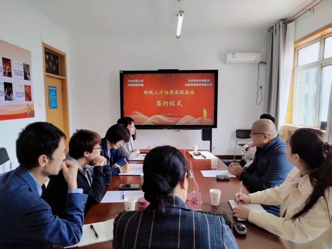 11月2日上午,beat365官网与北京国佳中睿致信税务师事务所有限公司签署财税人才培养实验基地的签约仪式在学院会议室举行。党委副书记胡卓理、副院长温立洲、北京国佳中睿致信税师事务所所长孟佳、税务系系主任曹琳、财政系系主任李玉姣、税务专硕导师组组长李金荣及学院部分教师参加了签约仪式。