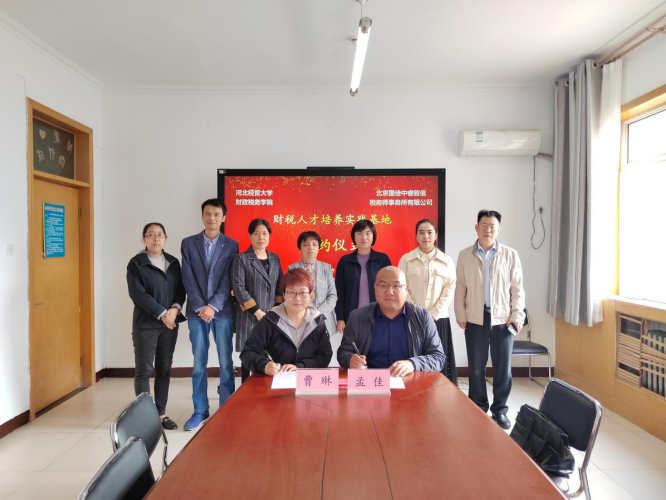 在签约仪式上,北京国佳中睿致信税务师事务所所长孟佳和税务系系主任曹琳分别代表北京国佳中睿致信税务师事务所和beat365英国官方网站签署了人才培养实践基地合作协议。