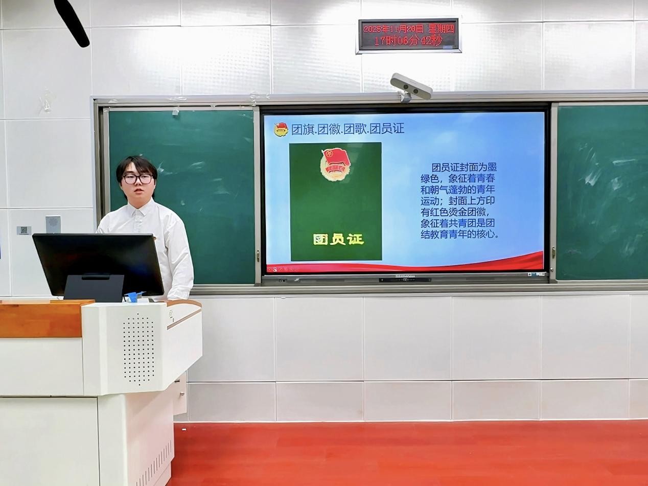 苏浩系统讲解共青团核心知识,阐释团旗、团徽、团歌的深层内涵,解读团员证功能与团章核心要义;重点强调了共青团的组织原则,强调团的纪律兼具自觉性与强制性。苏浩指出了团员的权利与义务,引导学生们树立权责统一意识,并从青年成长与时代需求出发,点明入团既是荣誉更是责任,激励学员坚定理想信念、践行青春担当。