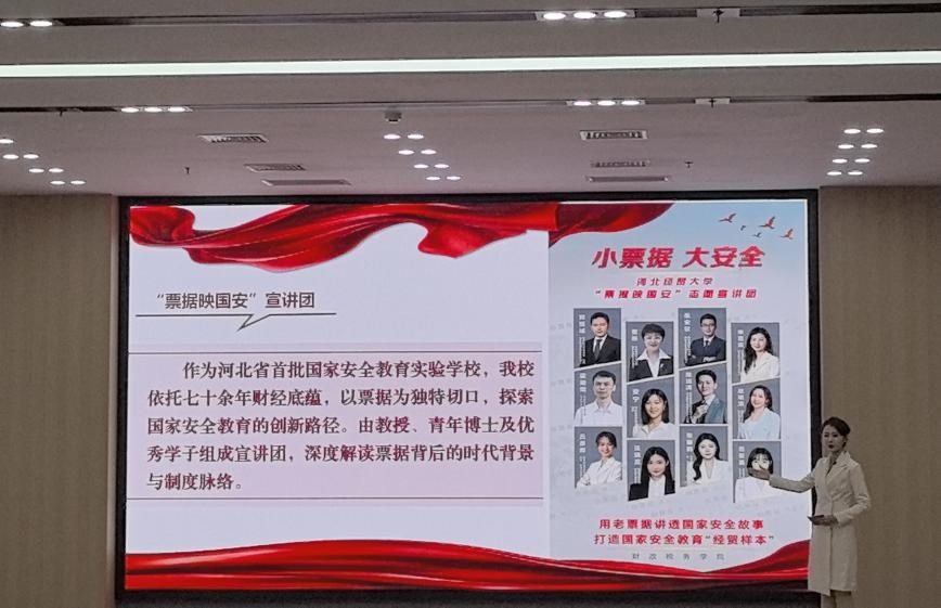 据悉,河北省学校国家安全教育指导委员会是在省教育厅领导下,对全省学校国家安全教育教学发挥研究、咨询、指导、质量监控和服务等作用的专家组织。beat365官网票据映国安宣讲团的宣讲展示,是省教育厅对beat365官网"财税+国家安全"特色育人模式的高度认可。近年来,beat365官网充分发挥学科专业优势,将国家安全教育融入人才培养全过程,打造了"小票据 大安全"等特色品牌项目,形成了具有财税辨识度的国家安全教育成果,并斩获南京大学CTTI智库最佳示范案例,相关国家安全教育实践被人民日报社“新安全”、全国高校思想政治工作网、全国学校国家安全教育指导委员会等权威媒体报道,成效广受认可。