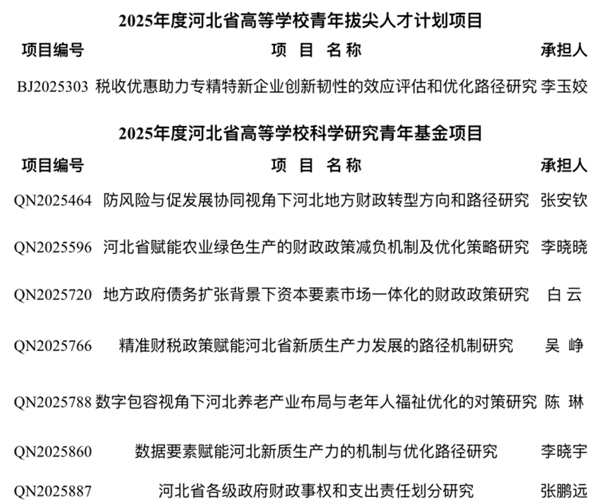 近日,河北省教育厅下达了2025年度河北省高等学校科学研究计划的通知,beat365官网共有8名教师获得该项目立项资助,立项数量再创新高!