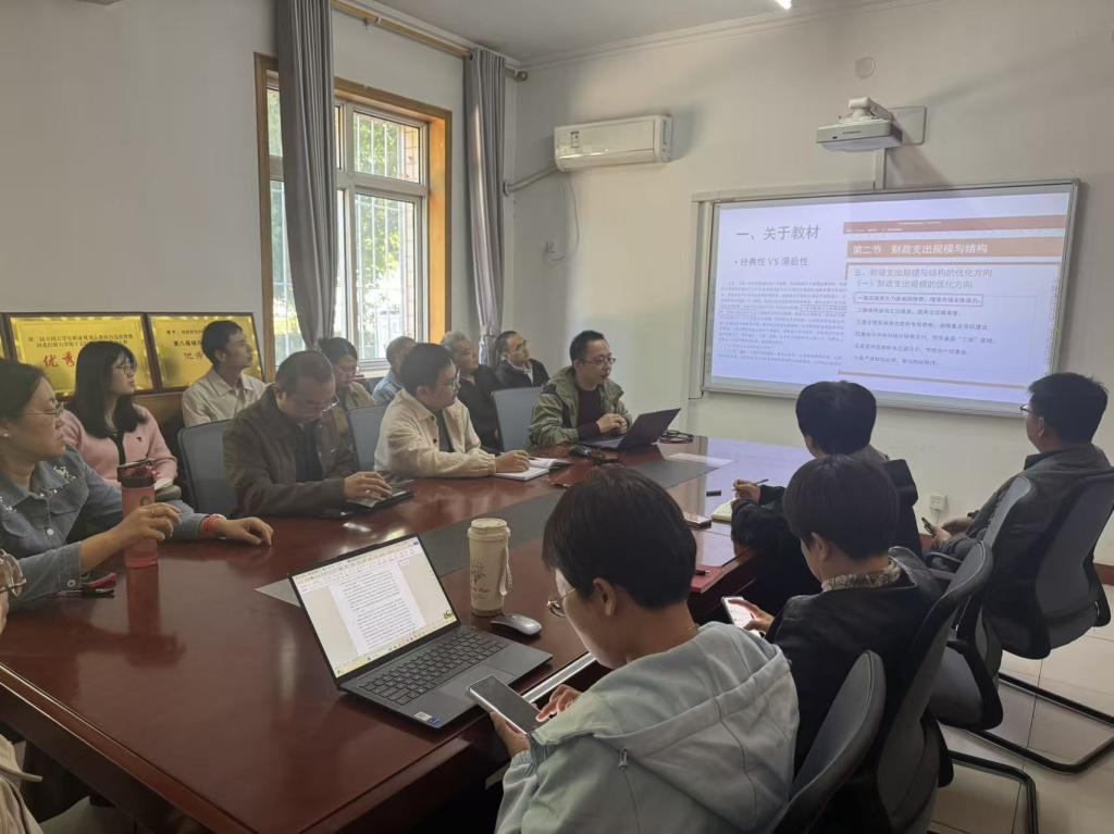 在此次活动中,张鹏远老师从财政学教材出发,分别从理论拓展、方法拓展和实践拓展三个方面展开汇报。在理论拓展方面,以教材所涉及的公共财政思想内容为例,提出将公共风险论、国家治理财政学、新市场财政学等新兴原创财政学理论引入课堂,拓展学生的眼界和视野;在方法拓展方面,提出将数据分析、实证研究、理论建模、文本分析等研究方法适当引入不同章节的教学中,丰富学生的方法论;在实践拓展方面,提出将财政部、世界货币基金组织(IMF)等相关网站的政策文件和数据资料引入课堂,帮助学生将教材中的财政理论与现实中的财政实践相结合。汇报结束后,温立洲副院长做总结发言,提出学院未来将继续通过集体备课等方式进一步提升教师的教学水平,确保课堂教学内容具有高阶性、创新性和挑战度,助力我校“新财经”人才培养。