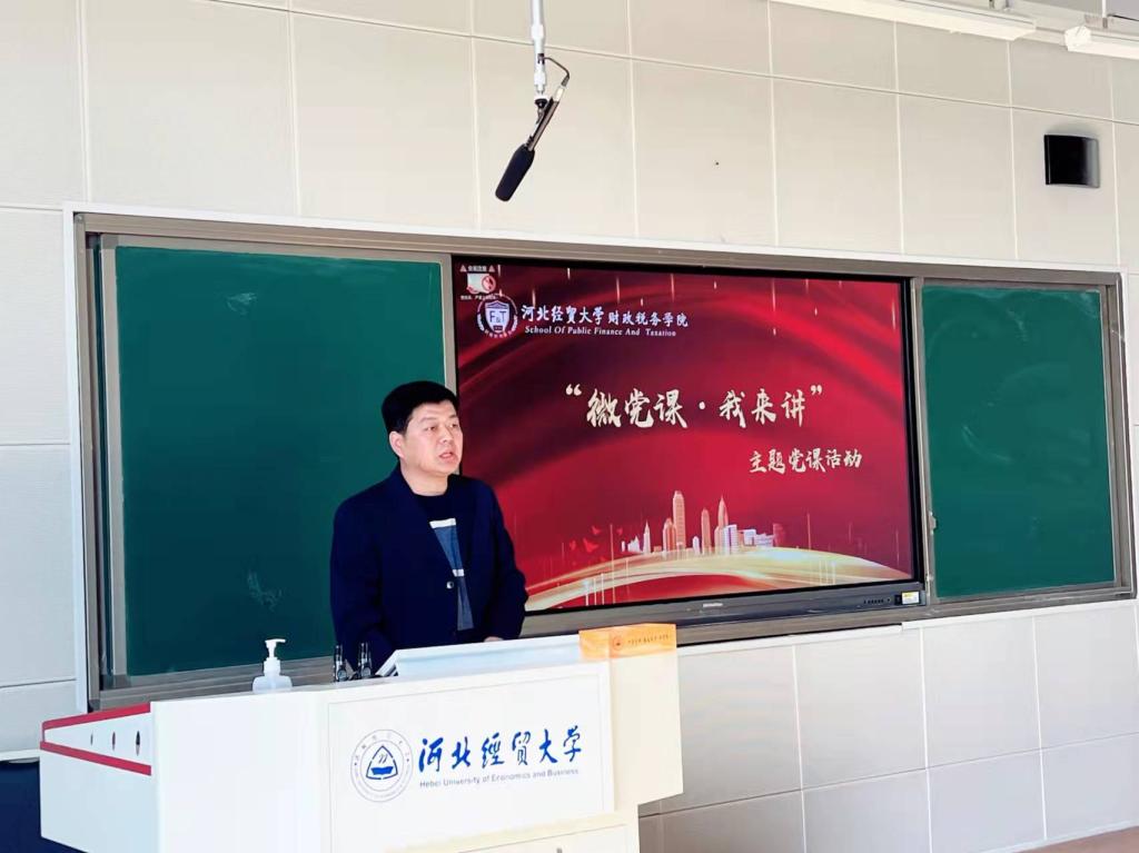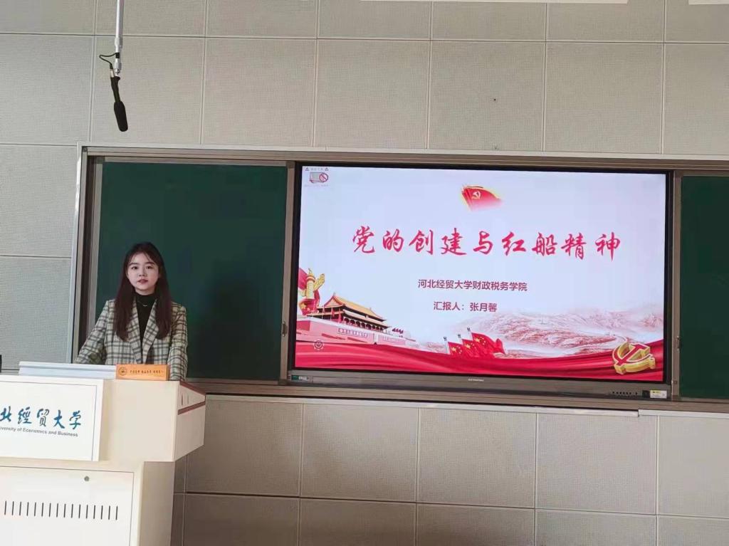3月31日下午,beat365英国官方网站“微党课·我来讲”主题党课之“我为中国精神代言”命题党课第一课在北三教A202开讲。此次党课专题为“党的创建与红船精神”,由财政专业学生党支部党员张月馨主讲,学院党委书记郝江华、副书记胡卓理、财政学生支部党员及部分入党积极分子45人参加了党课活动。