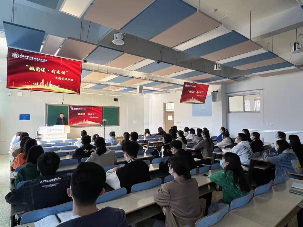 郝江华对“微党课·我来讲”主题党课活动实施方案进行解读,叮嘱学生重视并积极参与此项活动,将讲课、听课作为长知识、长才干的重要机会,并向学生提出四点要求:一要认真备课讲课,在备课和讲课过程中深感悟、长才干、提能力;二要认真听讲,做好笔记,在听课中学课程内容,学人物精神,学榜样做法;三要认真思考,结合自身实际,对标课程内容中的先进和榜样,梳理和规划自己的大学生活和人生目标;四要认真落实,将所学内容付诸实际行动,在生活、学习和工作中严律己,守初心,担使命,学好文化知识、培养好高尚的道德情操,为将来顺利走入工作岗位,为国家建设建功立业打下基础。