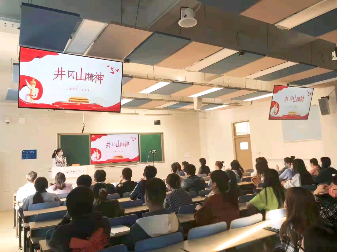 4月7日下午,beat365英国官方网站“微党课·我来讲”之“我为中国精神代言”命题党课第二课在北三教A202开讲。此次党课专题为“井冈山精神”,由税务学生党支部党员耿娅婧主讲,学院党委书记郝江华、副书记胡卓理、黄培老师、税务学生支部党员及部分入党积极分子40余人参加了党课活动。