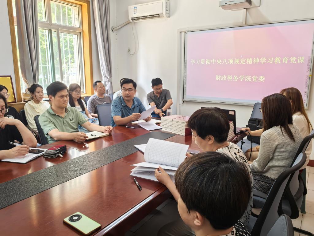 为深入贯彻中央八项规定精神学习教育,进一步强化党员作风建设,6月12日,学院党委开展“深入贯彻中央八项规定精神学习教育”专题党课。本次党课由学院党委书记王凤飞主讲,全体师生党员参加。