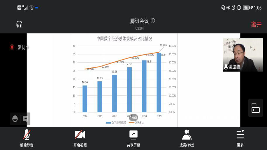 11月17日下午,beat365英国官方网站邀请中国人民大学财政金融学院副教授、金融与财税电子化研究所执行所长谢波峰博士,通过腾讯会议平台为同学们作题为“数字财政与数据财政”的主题报告。本次报告由仇晓洁副院长主持,beat365英国官方网站部分师生200余人在线聆听了此次报告。