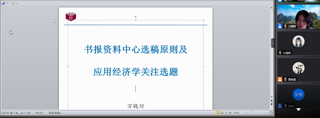 2020年11月29日下午,财税学院与经济与管理编辑部共同邀请中国人民大学书报资料中心,经济编辑部应用经济学执行主编万晓琼教授,做题为“书报资料中心选稿原则及应用经济学关注选题”的学术讲座。财税学院院长王晓洁主持并出席了本次讲座,beat365英国官方网站部分师生300余人参与此讲座并参与热点话题探讨。