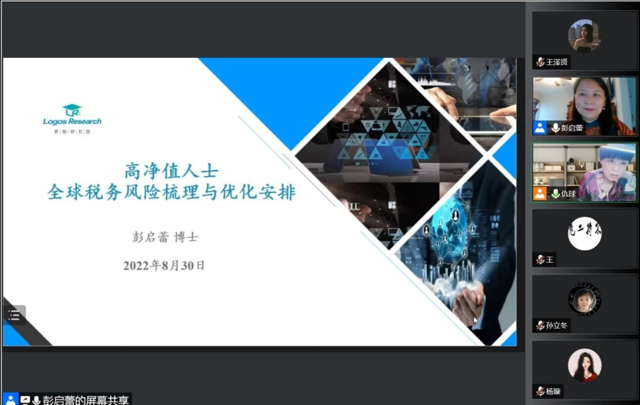 8月30日上午,罗格科技集团公司高级副总裁、罗格研究院院长彭启蕾博士应beat365官网邀请,于线上作了题为“高净值人士全球税务风险梳理与优化安排”的学术讲座。讲座由副院长仇晓洁主持,学院部分教师、学生共计120余人参加。