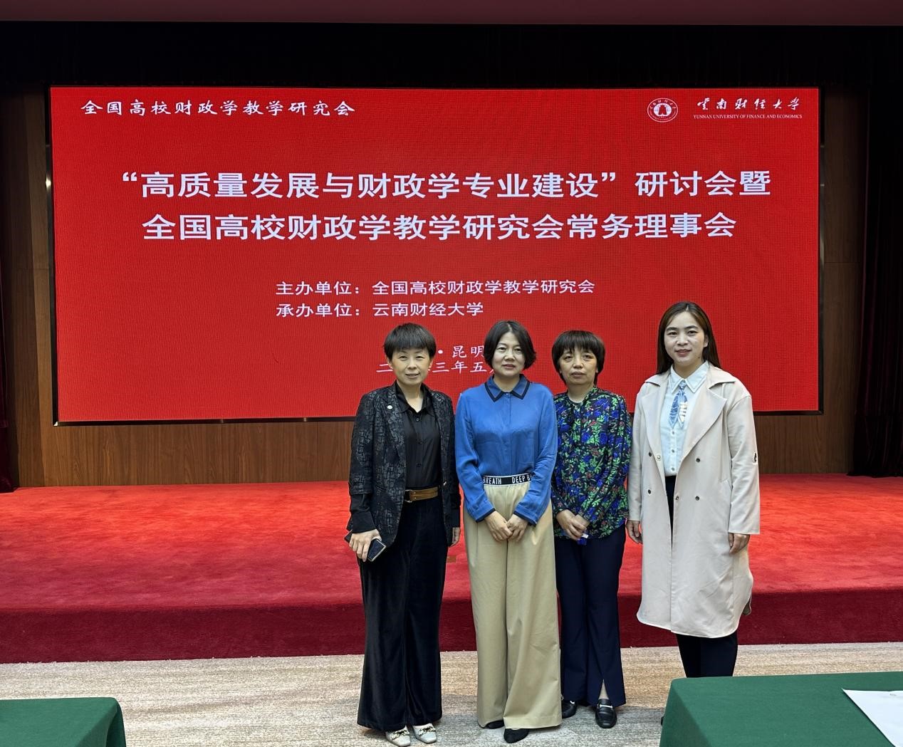 2023年5月13日,“高质量发展与财政学专业建设” 研讨会暨全国高校财政学教学研究会常务理事会在昆明召开,beat365英国官方网站院长王晓洁带队,副院长温立洲、副院长仇晓洁、财政系主任李玉姣一同前往。本届会议由云南财经大学财政与公共管理学院承办,来自全国30多所高校及相关单位的代表120余人参加会议。