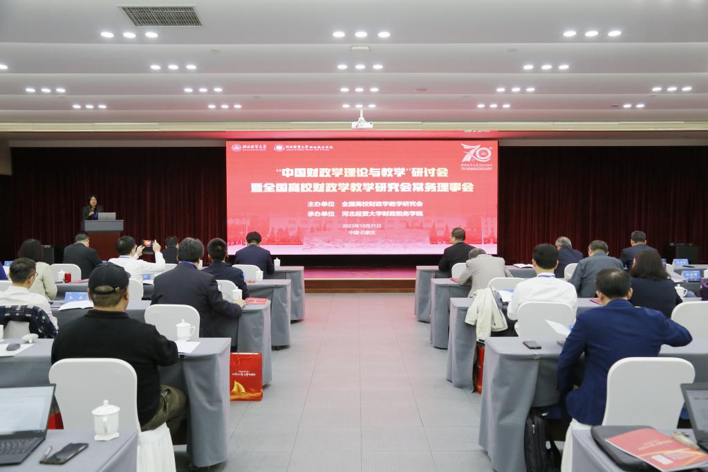 10月21日,由全国财政学教学研究会主办,我校beat365英国官方网站承办的“中国财政学理论与教学”研讨会暨全国高校财政学教学研讨会常务理事会在石家庄召开。校党委副书记、校长黄晟,全国高校财政学教学研究会会长、中央财经大学校长马海涛出席并致辞。来自中央财经大学、中国人民大学、上海财经大学、西南财经大学、江西财经大学、天津财经大学等全国26所高校、科研单位及2家出版社的60余名专家、学者参会。