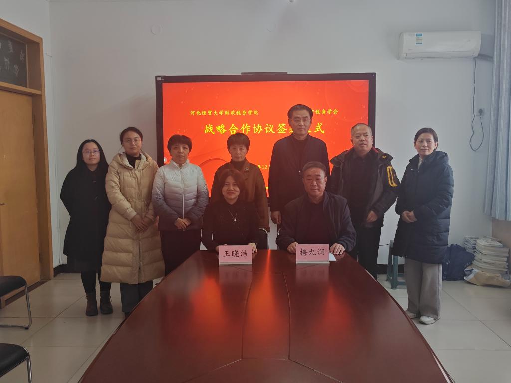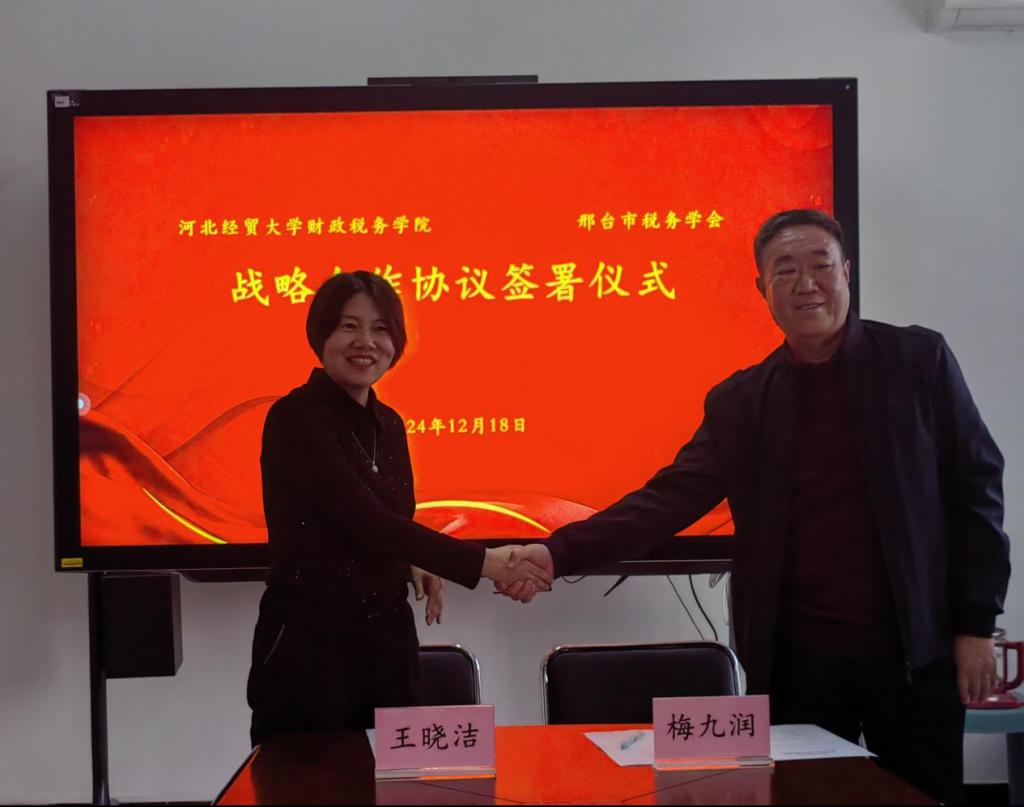 王晓洁在致辞中对邢台市税务学会一行的到来表示热烈欢迎,并向与会者介绍了学院的学科发展状况及人才培养规划,表达了与邢台市税务学会合作的殷切期望。梅九润对学院取得的成就给予了高度评价。
