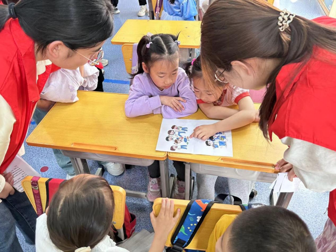 随后为进一步加深小朋友对知识的理解,志愿者与小朋友进行了游戏互动。志愿者分发不同类型的霸凌情景卡片,通过随机问答的形式,小朋友回答遇到此情景应如何做。活动过程中,小朋友们积极踊跃地分享着自己的做法,与志愿者进行交流互动,教室中欢声笑语,通过游戏实践小朋友们深入了对反霸凌知识的理解。