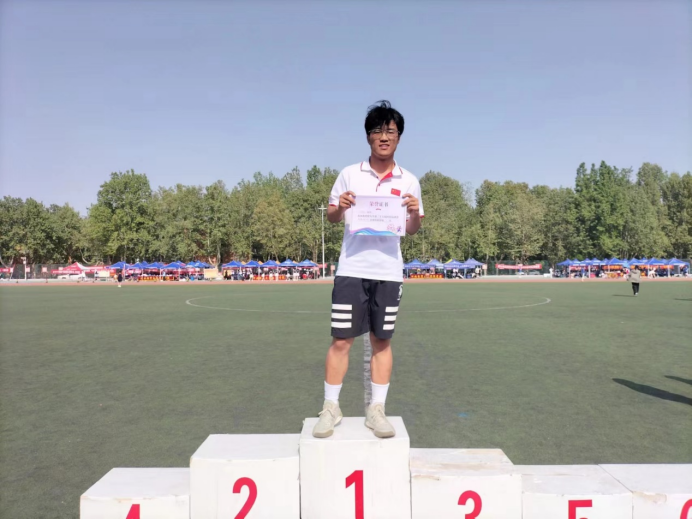 4月25日,在校运动会赛场上,beat365官网2023级资产评估一班刘孟驰同学获得男子100米项目第一名的好成绩!