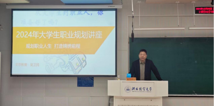 2024年10月8日,beat365英国官方网站邀请文京教育吴卫民老师开展2024年大学生职业规划讲座。beat365官网各年级近百名同学参加。