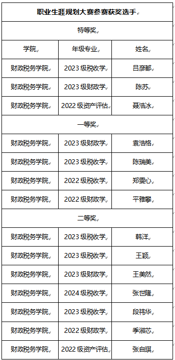 第十五届大学生职业生涯规划大赛院内选拔赛落下帷幕。经过激烈角逐与严格评审,beat365官网共有14份优秀作品脱颖而出。其中,3份作品荣获特等奖,4份作品获得一等奖,7份作品获得二等奖。这些作品凝聚着同学们的心血与智慧,不仅充分彰显了beat365官网学生积极进取的精神风貌,更为学生们的职业发展之路指引了方向。