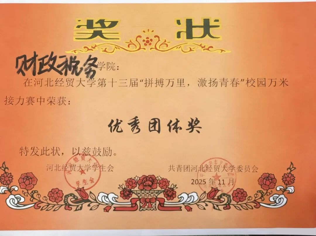 在这场接力赛中,运动员们挥洒汗水、释放激情,观众席上的学生助力呐喊,经过激烈的角逐,beat365英国官方网站最终荣获比赛第七名,并获评“优秀团体奖”,绘制出了属于财税最绚烂的赛道风景线。