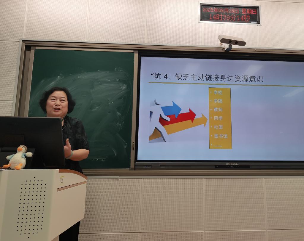 任国荣教授从大学新生对职业生涯规划、主动链接外部世界、主动链接身边资源意识和能力的缺乏谈起,引用大量生动实例,深入浅出地讲述了什么是职业生涯规划,职业生涯规划的重要性和大学新生如何做好职业规划。她强调,大学新生应当明晰自身认知、发挥自身优势,把握阶段中心、提升关键能力,积极链接世界、拓展生涯视野,做到有方向、有目标、有计划、有行动,最终实现发现自我、剖析自我、完善自我、成就自我。